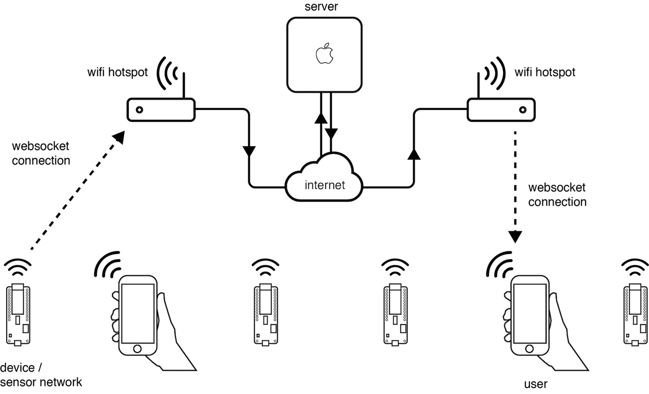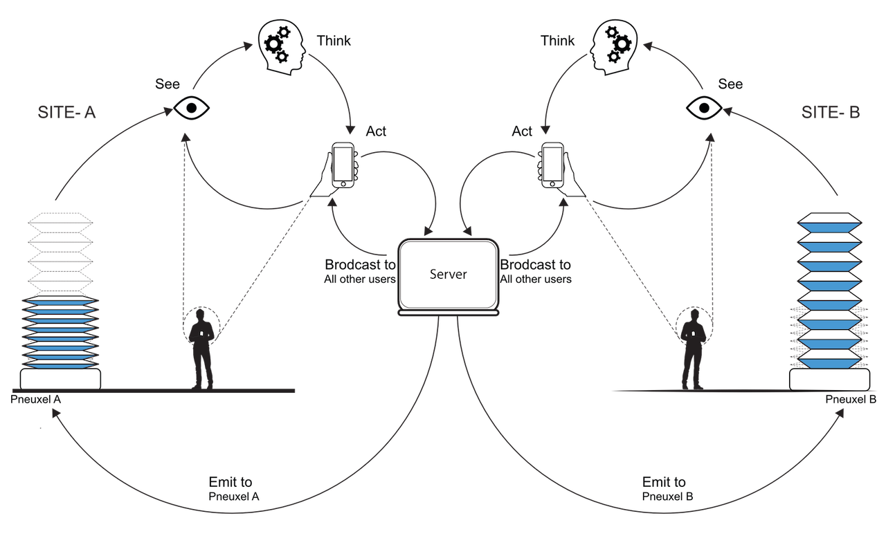 Browser client: Is the GUI as shown in the figure above. This lets people to interact with each other via pneuxels in real-time.