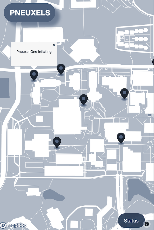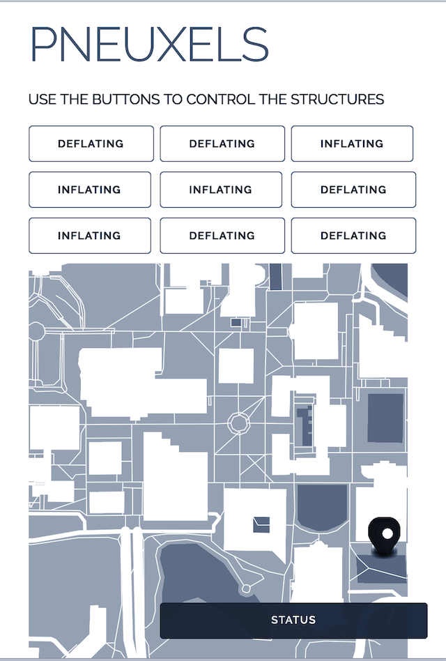 The user interface consists of an interactive map that visualizes locations of Pneuxels and an array of binary-state buttons for inflating or deflating individual Pneuxels.